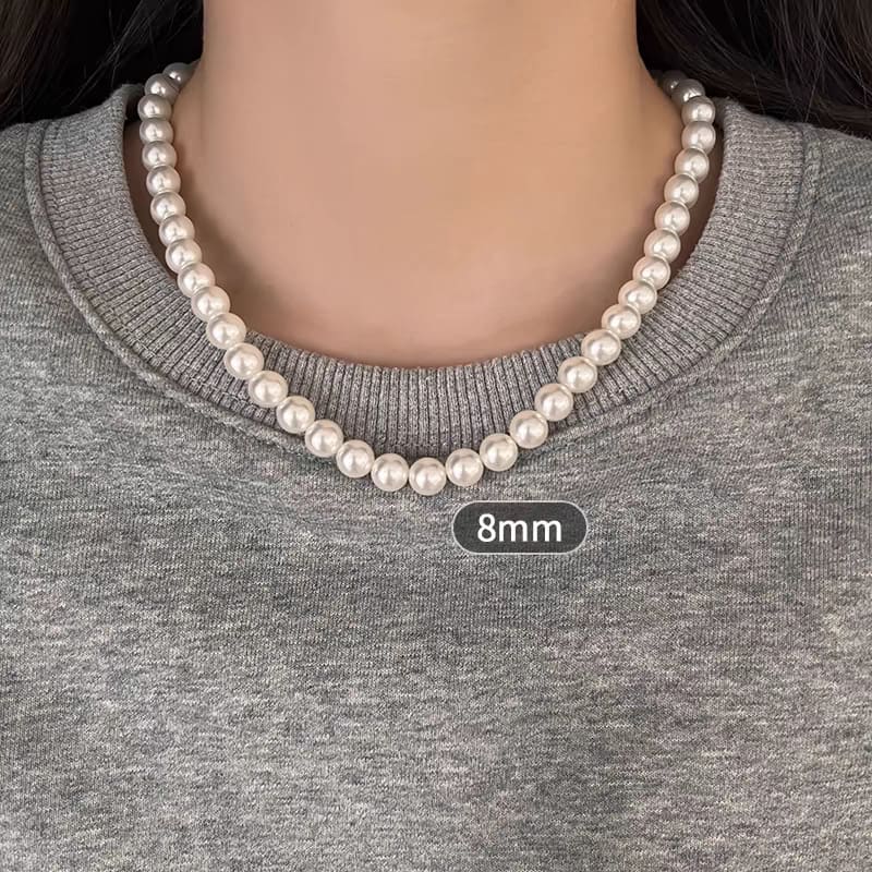 Minimalistinen 8MM valkoinen Faux Pearl kaulakoru pinottava