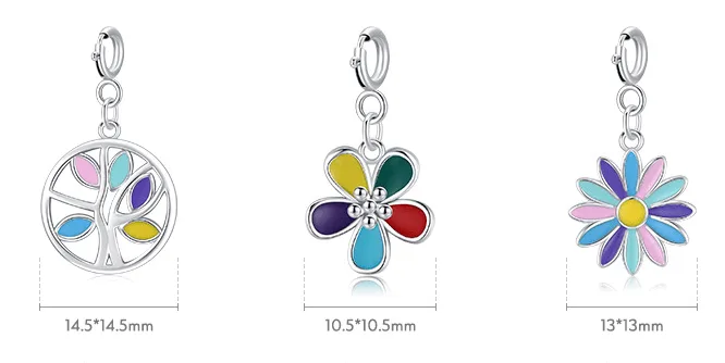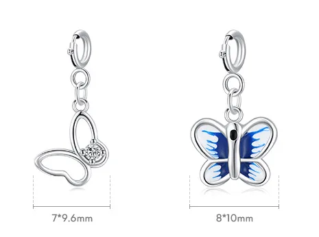 silver 12 pedals colorful flower pendant 0.8g; silver 5 pedals colorful flower pendant 0.7g; blue silver butterfly pendant 0.9g; silver star pendant 0.5g