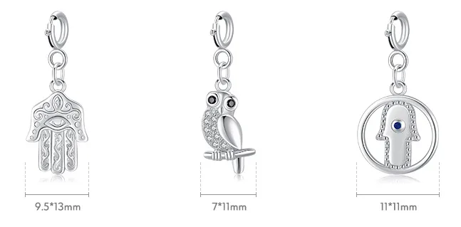 silver heart padlock pendant 0.6g; silver heart hollowed pendant 0.5g; silver palms pendant 1.1g; silver owls pendant 0.8g; silver ghosts pendant 1.02g