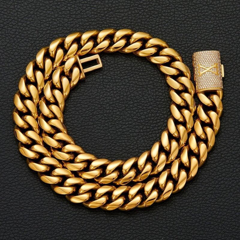 18K Gold Plated 10mm Cuban Link Chain Stainless Steel Necklace