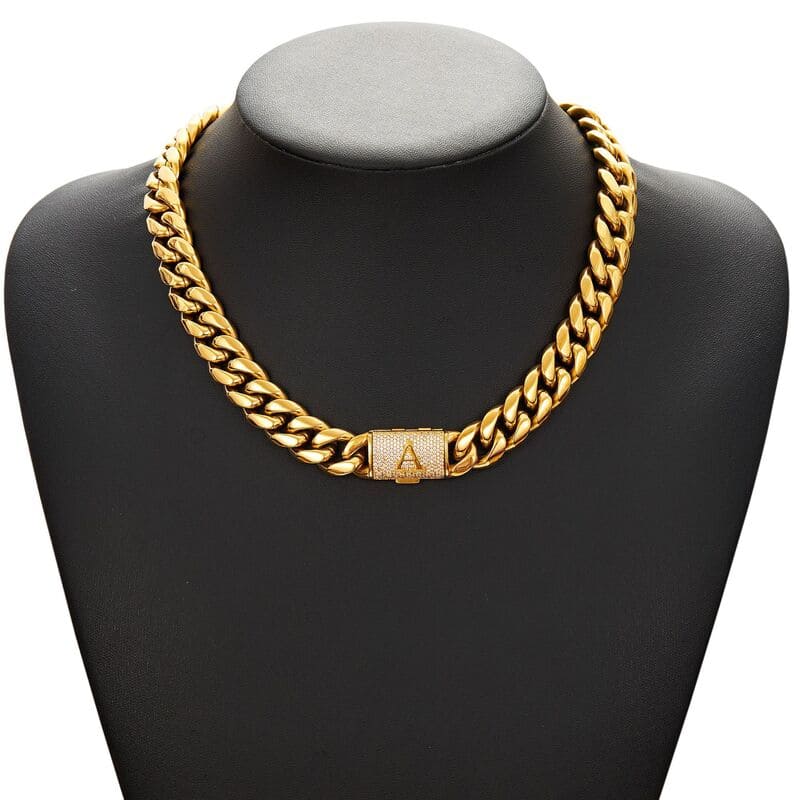 A-Z kirjaimet Diamond Kuuban Link Miami ketju 18k kullattu 18k kultaa