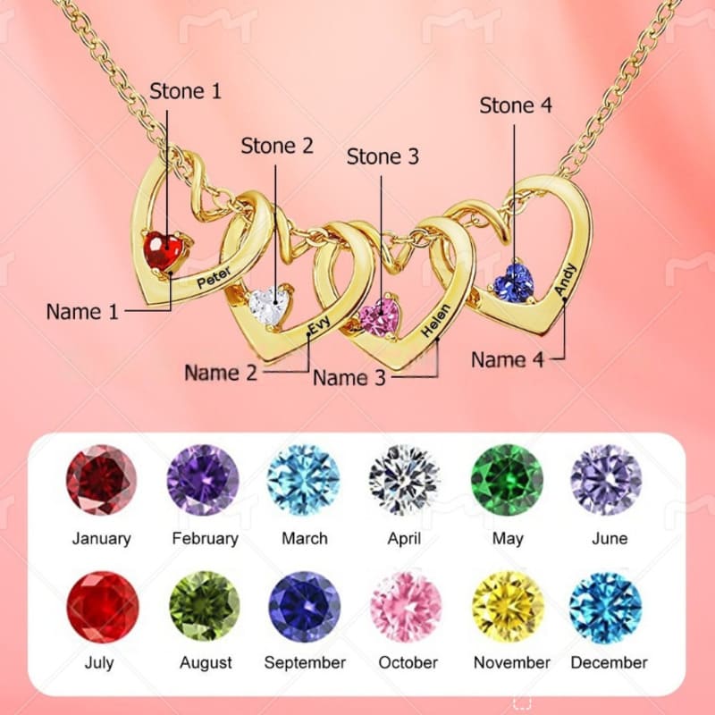Birthstone Heart riipus Räätälöity nimi kaulakoru