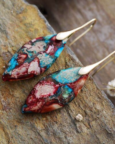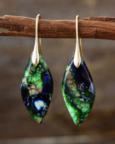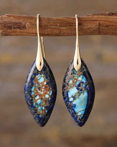 These exotic earrings, featuring turquoise pendants and high-quality brass, will surely make you the center of attention no matter the occasion.