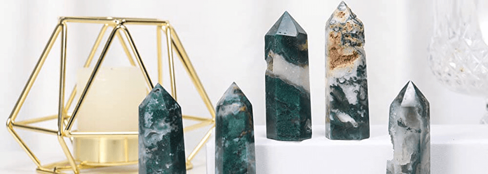 - Moss agate tower meaning: It has great healing and soothing properties. Moss agate symbolizes continuation of life and spiritual growth, it can also be considered as the symbol of protection and peace, which can bring good luck and positive protection to human body.