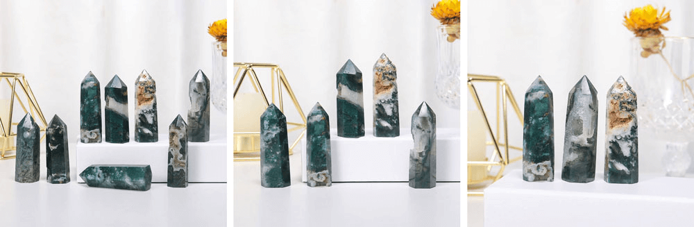 Druzy Moss Agate torni obeliski tukkukauppa