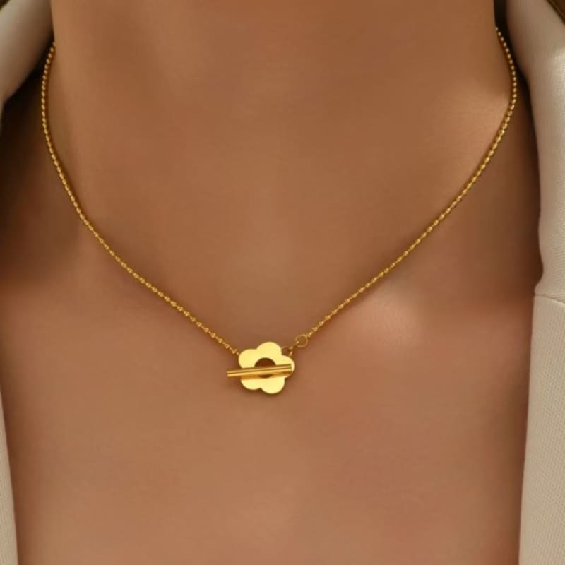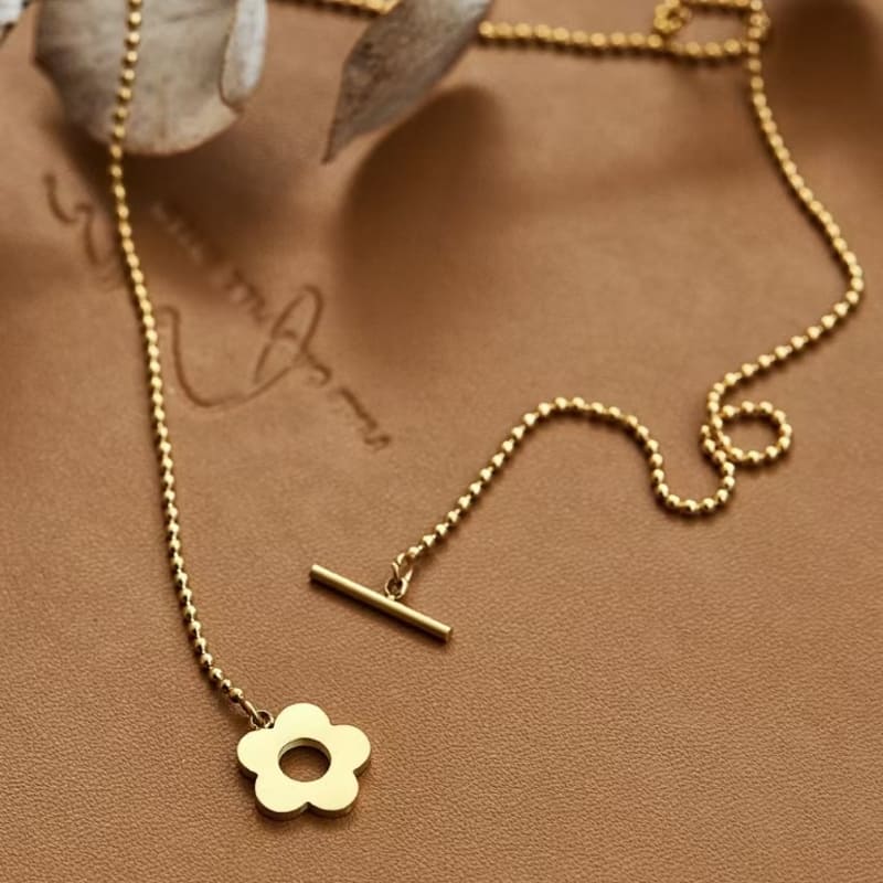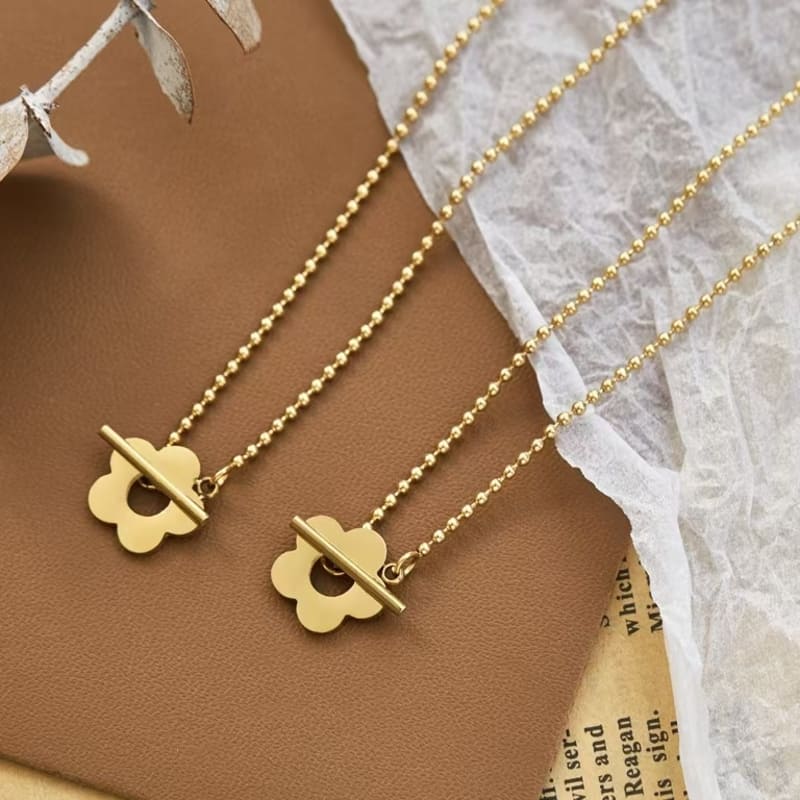 This simple flower gold pendant necklace is a perfect jewelry item for daily wear.