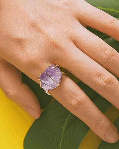 Raw Lavender Amethyst Crystal Ring Säädettävä rengas naisille Tukku
