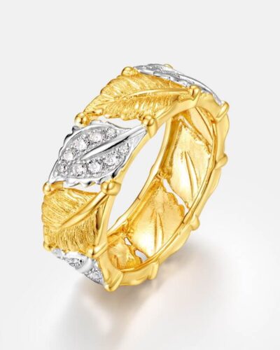 Italian käsityönä veistetty vaahteranlehti rengas 10K kullattu