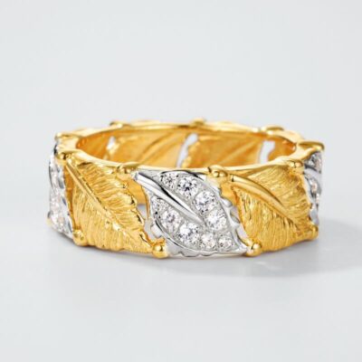 Italian käsityönä veistetty vaahteranlehti rengas 10K kullattu