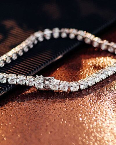 This tennis bracelet, crafted from 18K gold and premium Moissanite, shimmers with sparkling light as you swing your arm. It adds a touch of elegance to any outfit!
