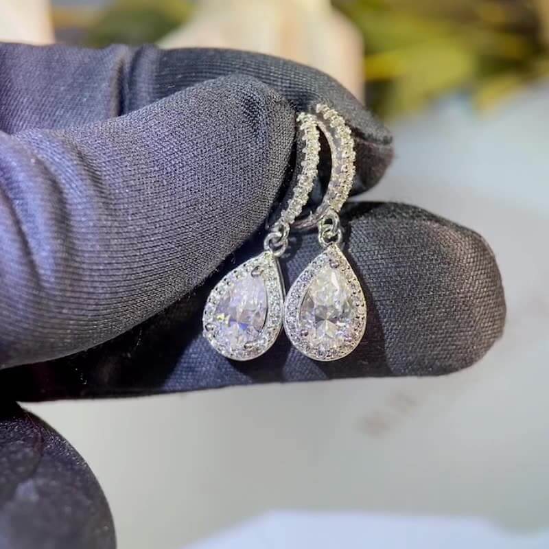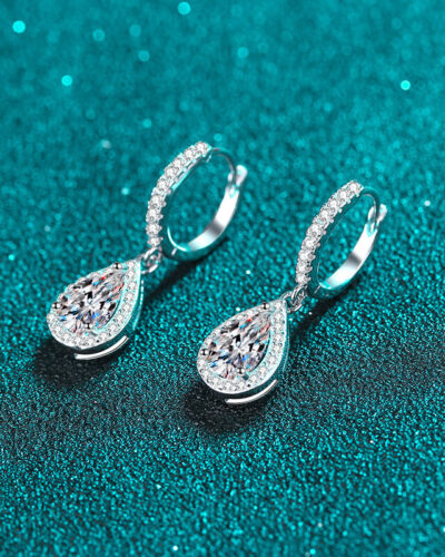 1 carat tear Moissanite Earrings Drop💧, 925 sterling silver creates a smart teardrop shape. It is light and elegant for daily wear and can also be dazzling at parties.