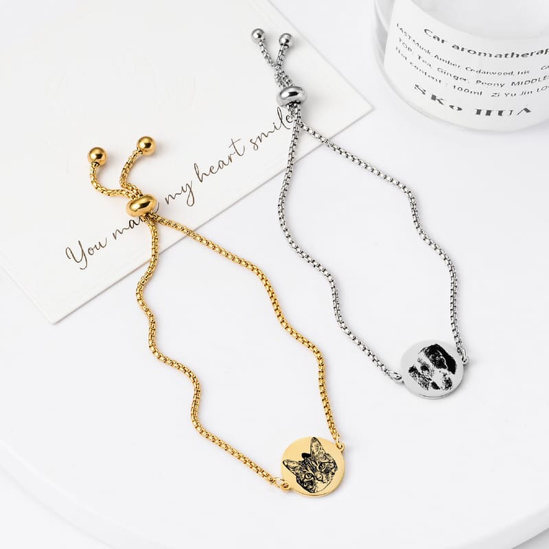 - Adjustable Pet Photo Personalized Bracelets for Couples