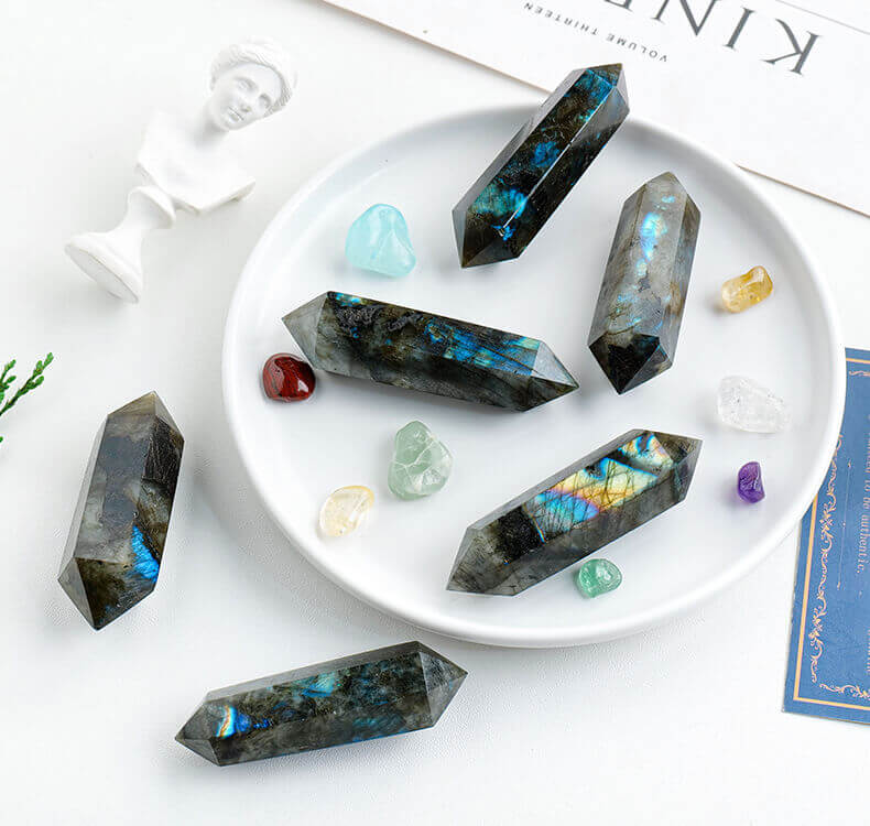 - Kiillotettu Double Point Healing Labradoriitti Tower