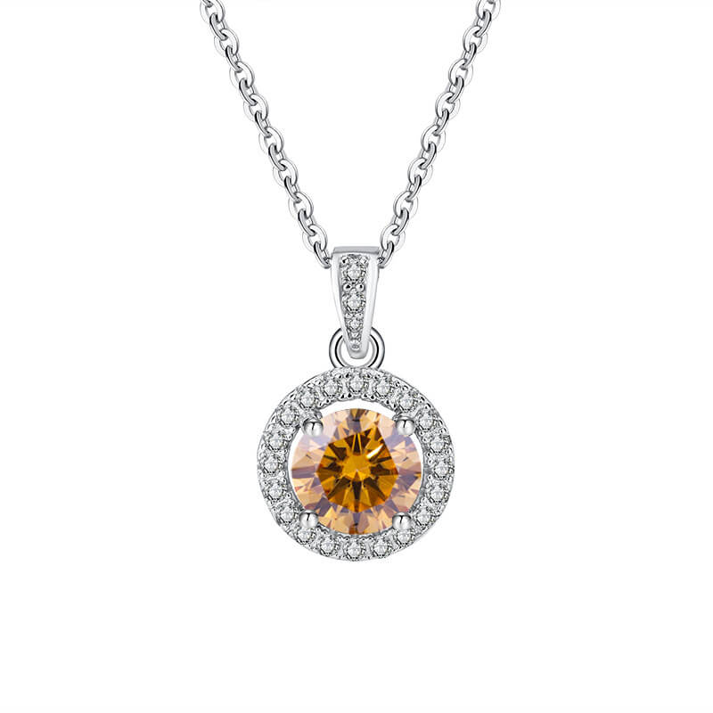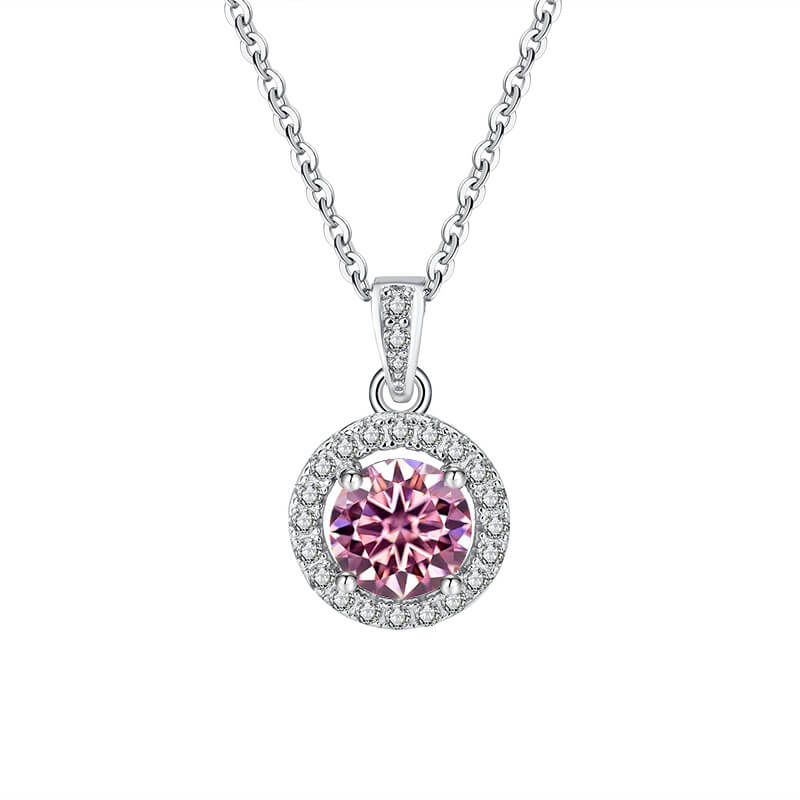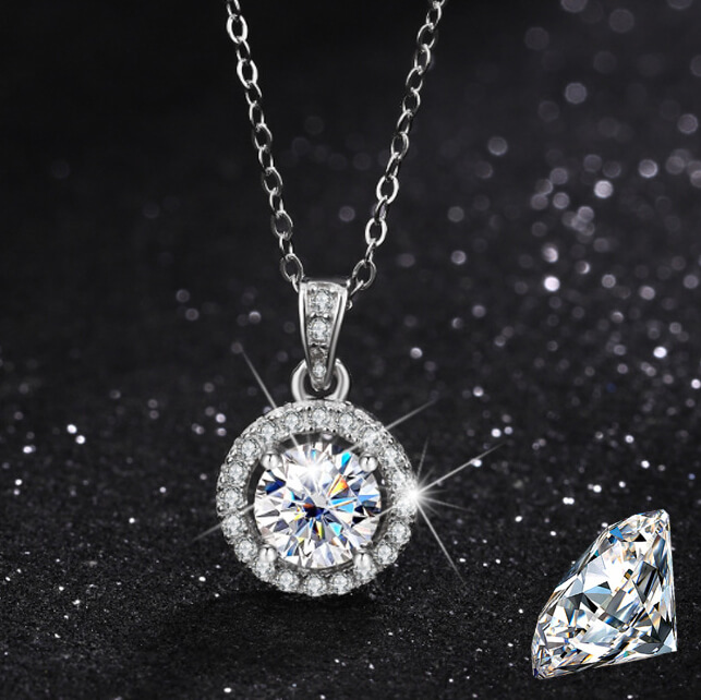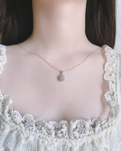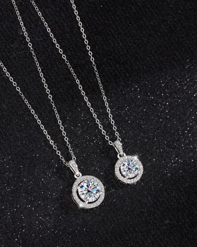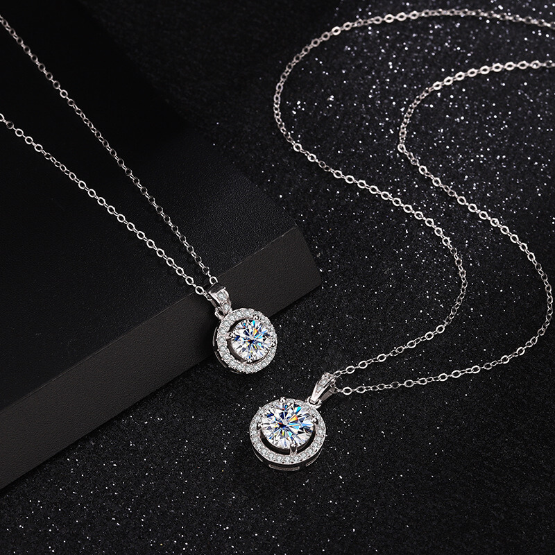Simple and shining Round Pendant Moissanite Necklace, paired with a selected 925 sterling silver chain and a classic round Moissanite pendant. Support wholesale, enjoy an 8% discount on orders over $500, and enjoy a 15% discount on orders over $1000.