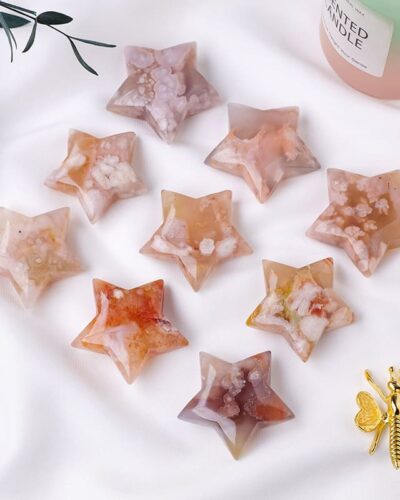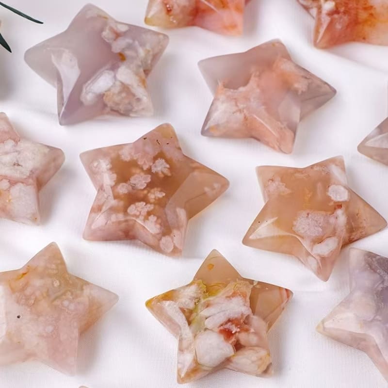 - Romantic Sakura Agate Star Gemstone Carving Large 1 Pcs