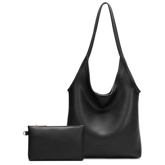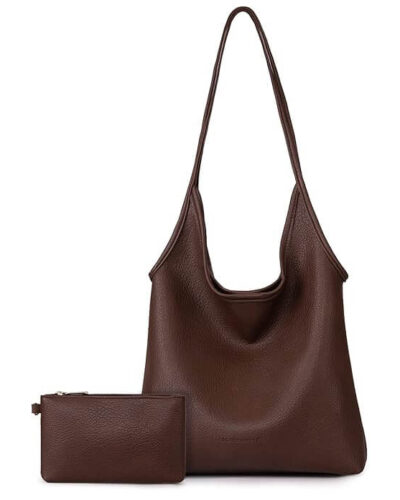 This shoulder bag and purse set pairs a sleek soft PU hobo tote with a matching wallet, blending understated elegance with everyday functionality.