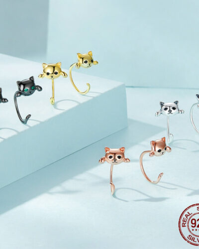 - Item: Cute 925 Sterling Silver Cat Huggie Earrings