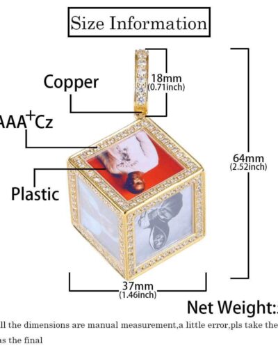 Square Pendant Zircon Necklace, with a textured Rope Chain! The simple cube design can be inlaid with multiple photos. It can preserve your unique memories and is the perfect choice for gifts!