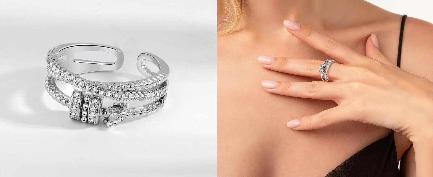 This is a sterling silver fidget spinner ring for women . When you feel depressed or anxious, you can rotate this anxiety ring to help reduce stress and soothe your mood.