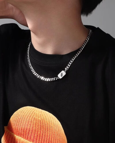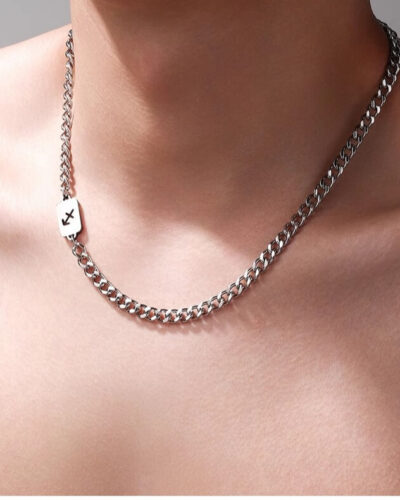 Kaksikerroksinen ruostumattomasta teräksestä valmistettu kuubalainen linkkiketju, jossa on risti