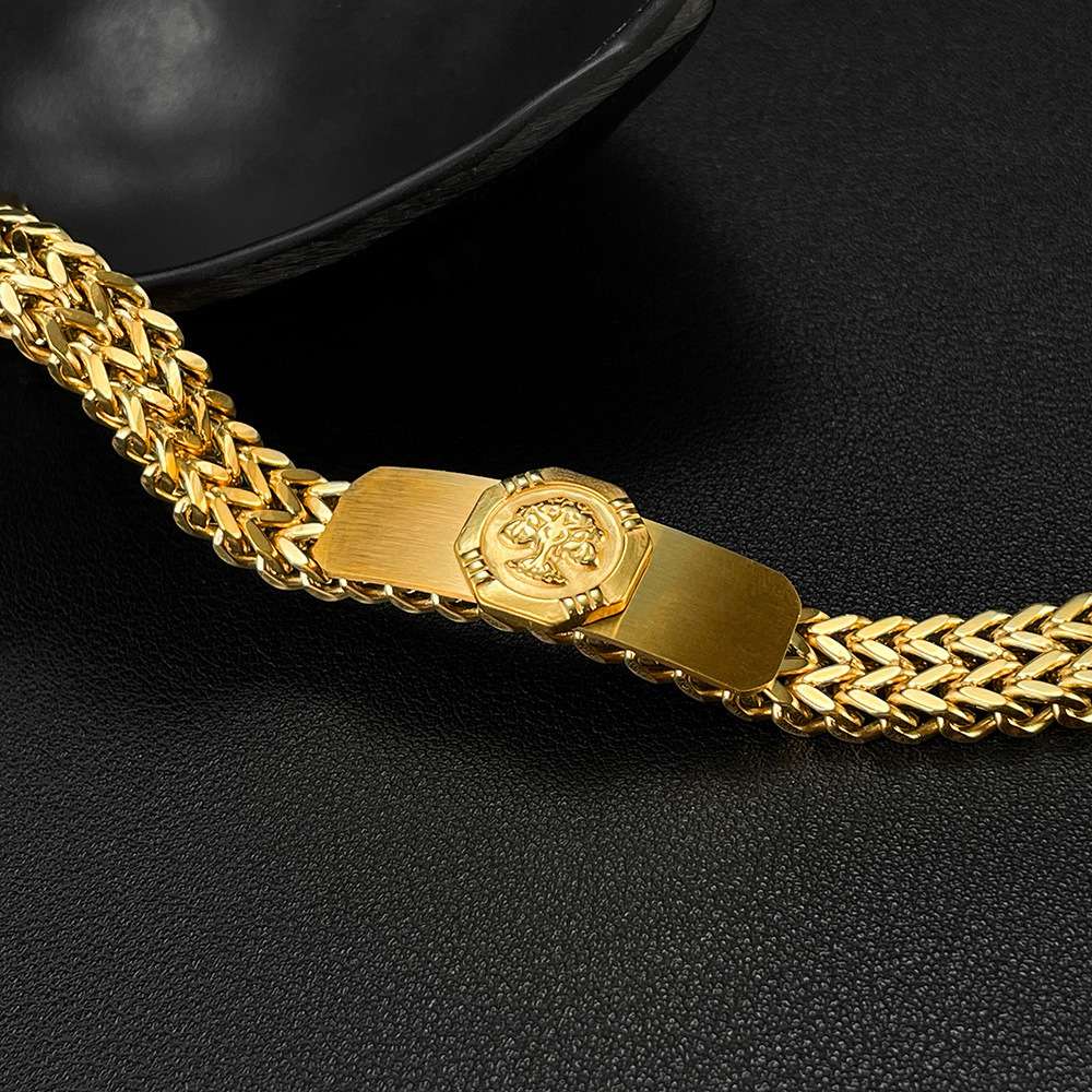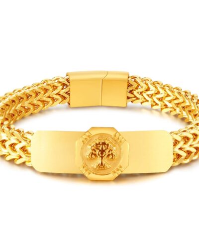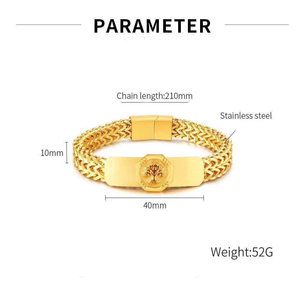 Tree of Life Engraved Men Stainless Steel Bracelet. Crafted from high-quality stainless steel, this bracelet features an engraving of the Tree of Life. Durable and wear-resistant, its unique design adds a touch of toughness to the wearer.