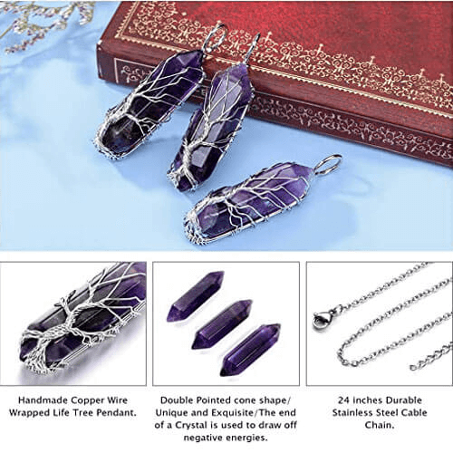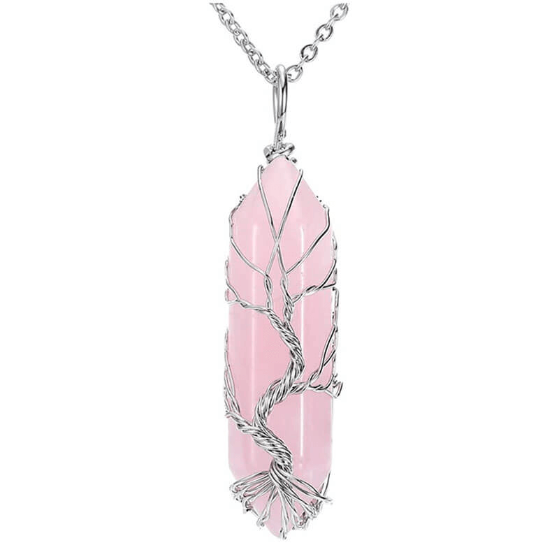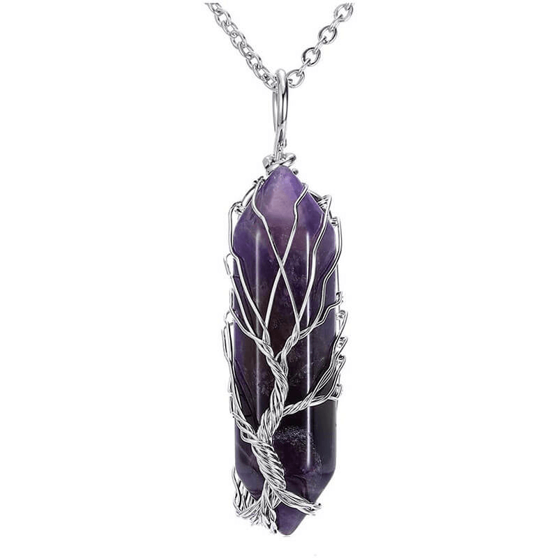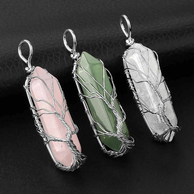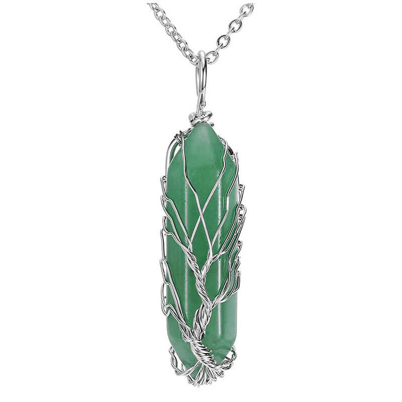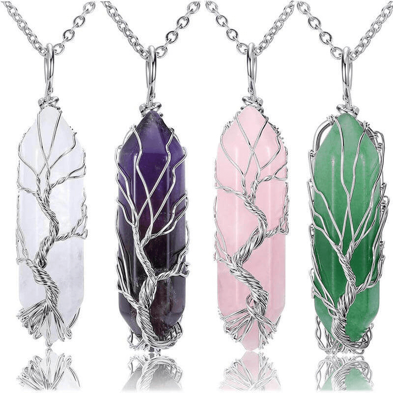 - This hexagon pendant necklace is made of natural crystal stone with a tree of life design. Wearing this crystal necklace can bring you wisdom, courage, positive energy.