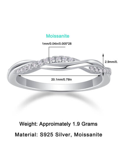 Kierretty Vine Moissanite rengas 925 Sterling hopea