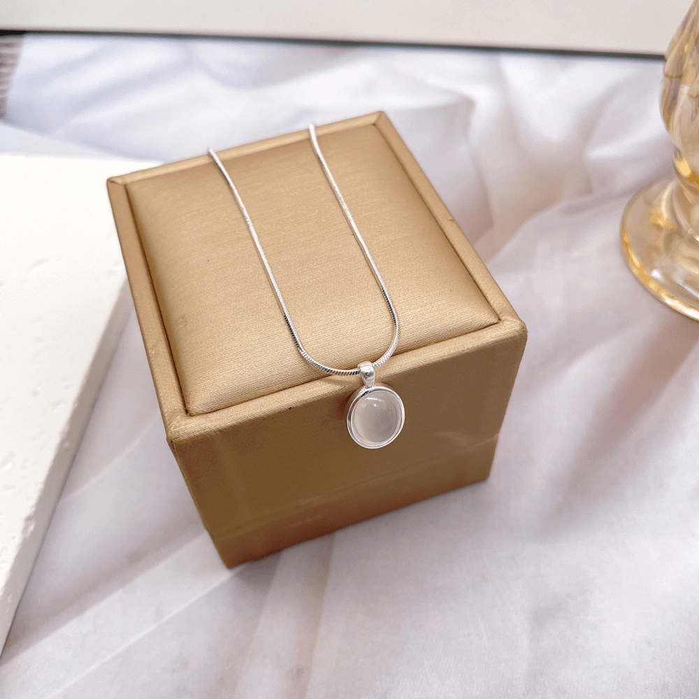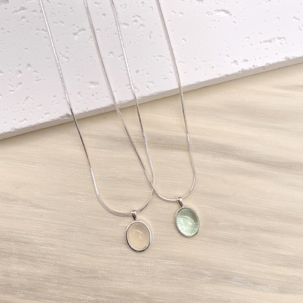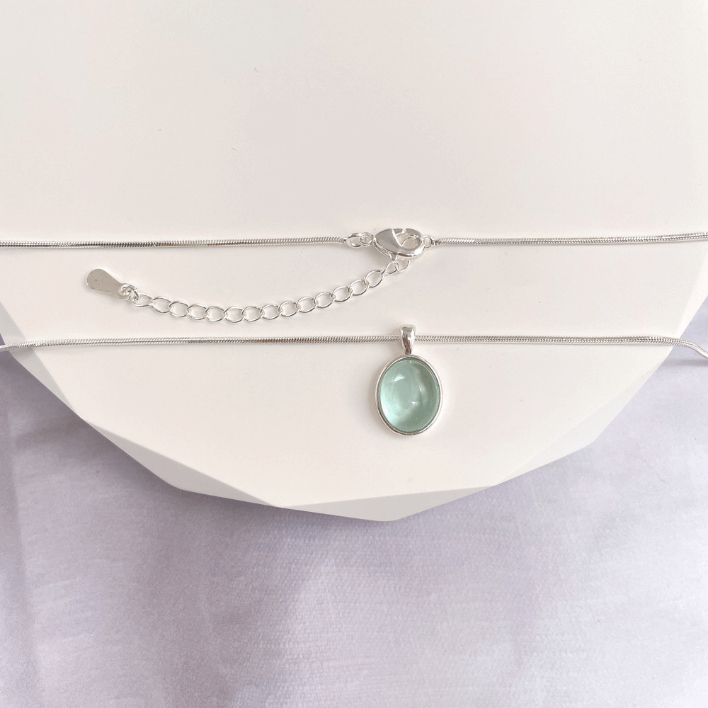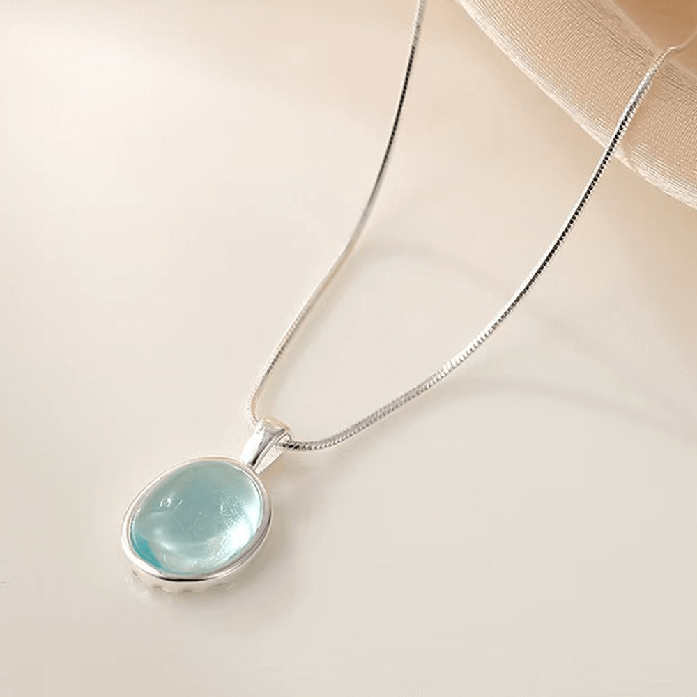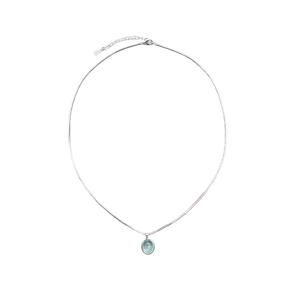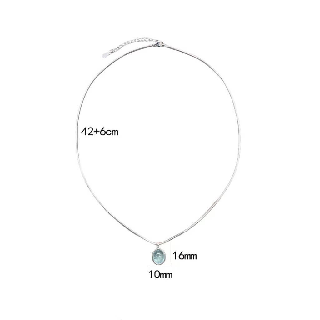 Minimalistinen soikea valkoinen kalcedoni akvamariini riipus kaulakoru
