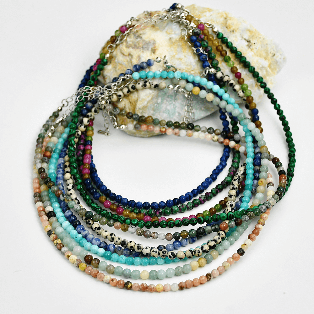 | Matériau | Amazonite, Aquamarine, Blue Granite, Colored Tourmaline, Indian agate, Malachite, Pink Plum Blossom Stone, Spotted, Unakite |