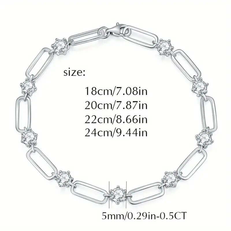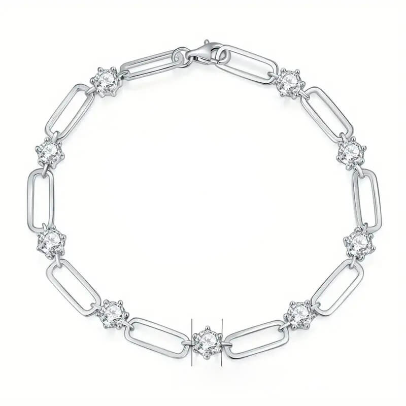 Adopt micro-setting technology, moissanite inlay is fine and firm on the 925 sterling silver paperclip bracelet , not easy to fall off.