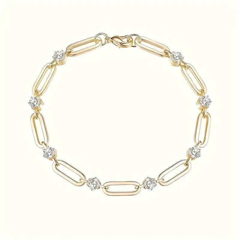 Bracelet Paperclip en argent 925 avec Moissanite ronde
