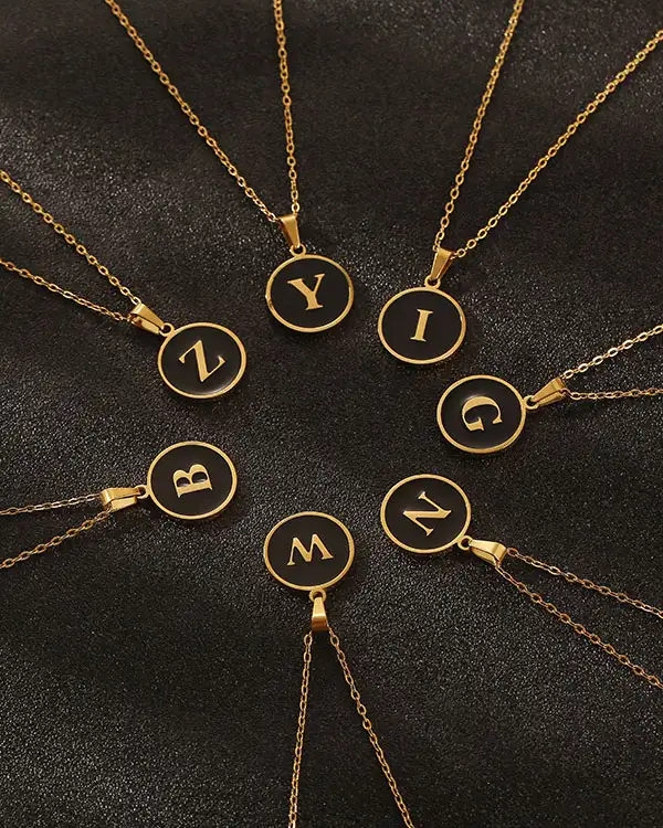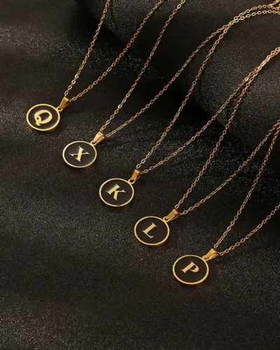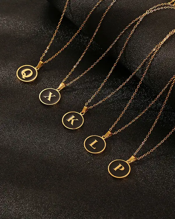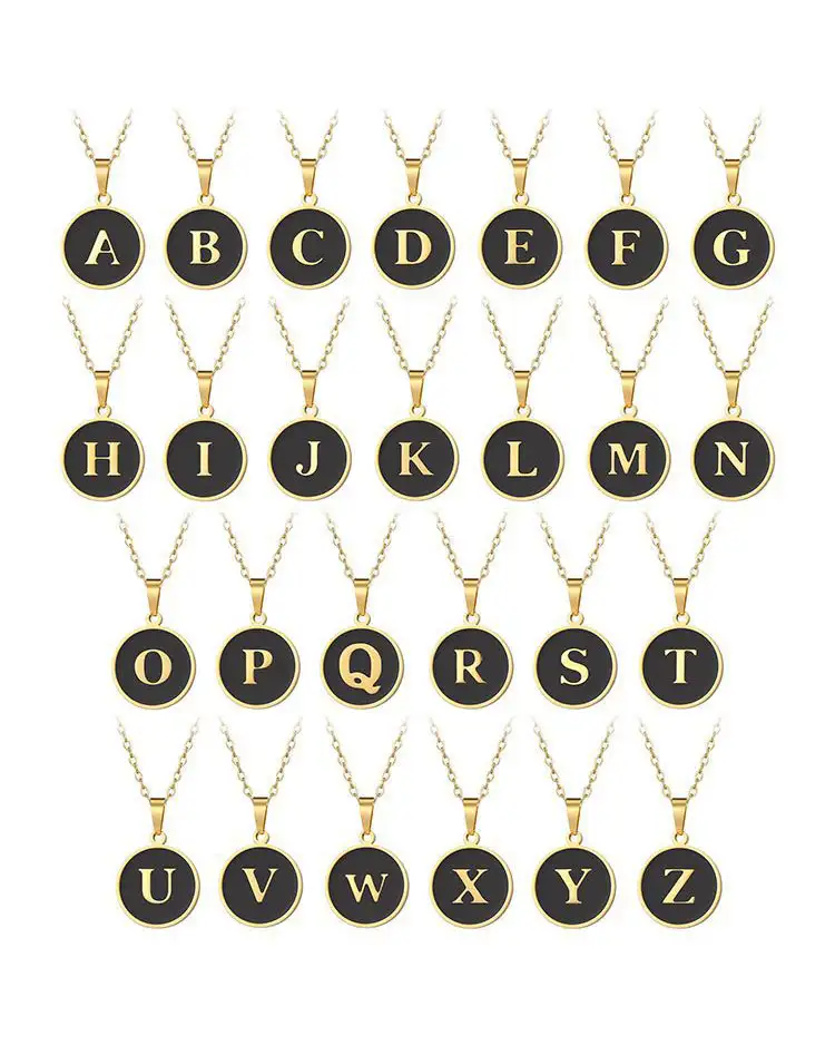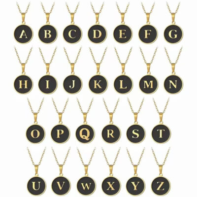Collier de lettres A-Z Acier inoxydable plaqué or Noir