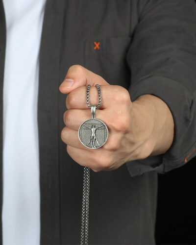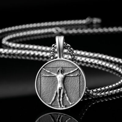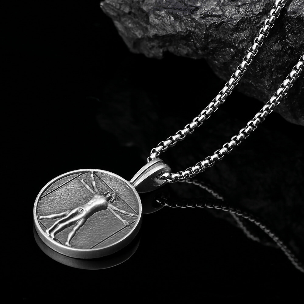 Art Vitruvian Colliers rétro pour hommes avec chaîne en acier inoxydable