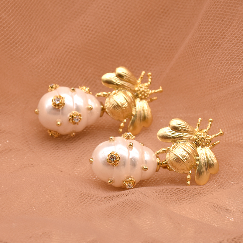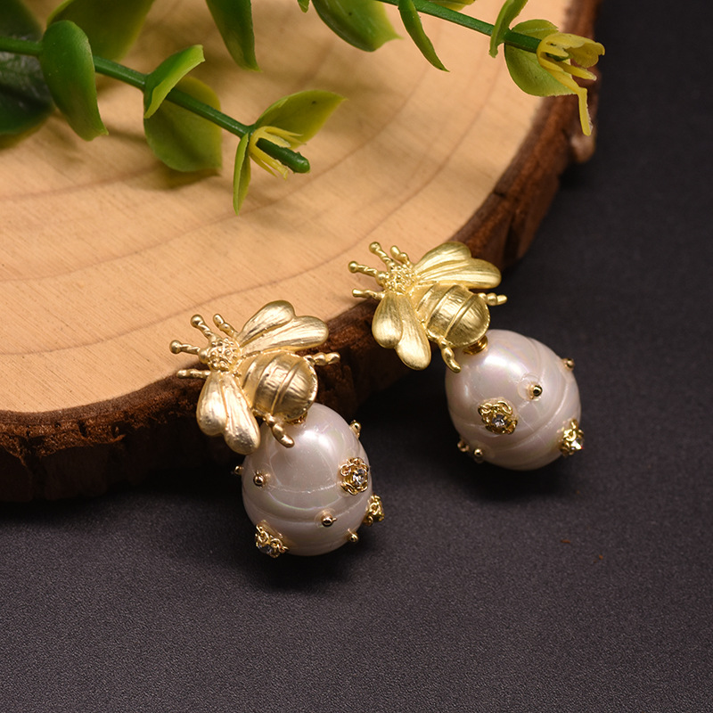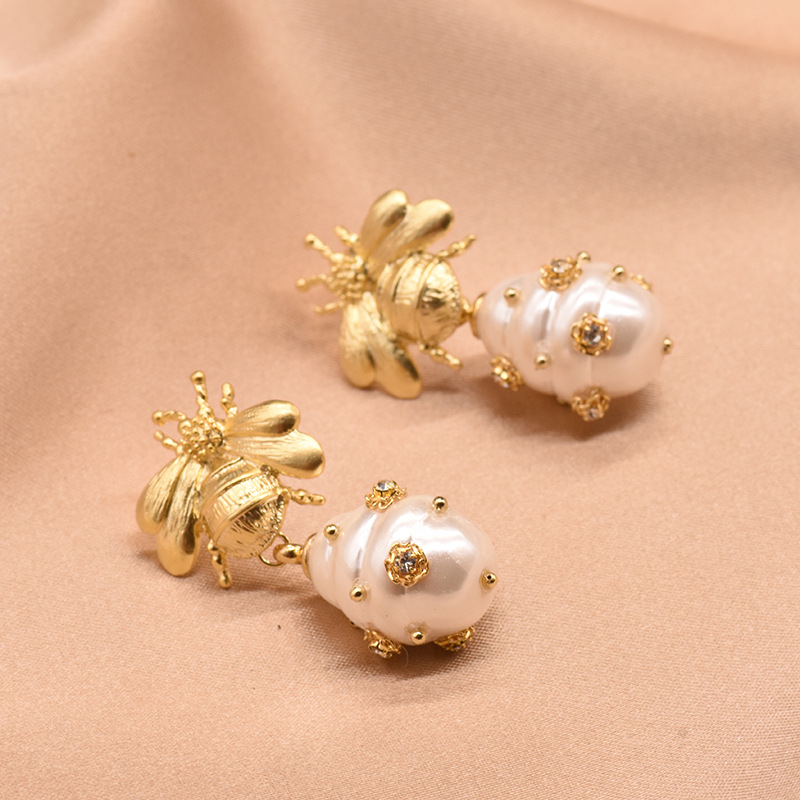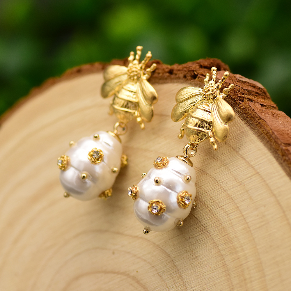 - Boucles d'oreilles nacre insecte abeille design vintage