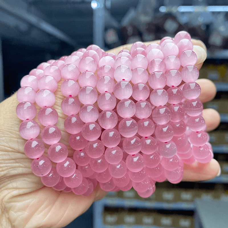 Bracelet de breloques en quartz rose avec pierre en forme d'oeil de chat en vrac pour femmes