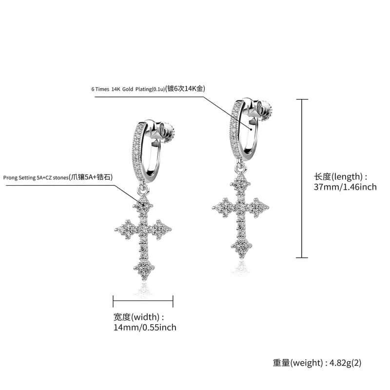 Boucle d'oreille Moissanite en croix avec argent sterling 925 Wholesale