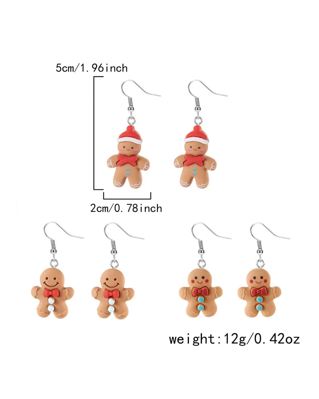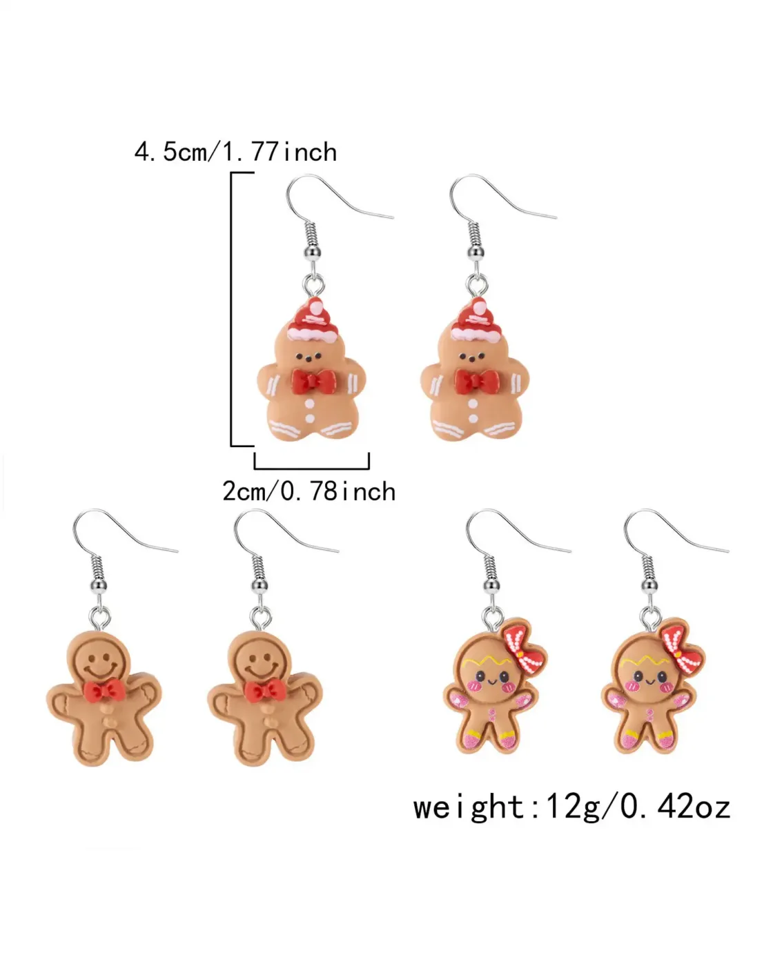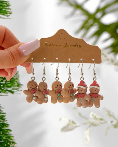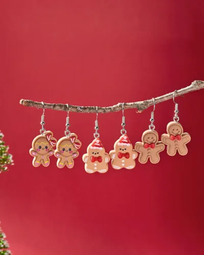 - These Christmas Gingerbread Earrings are crafted from high-quality alloy and come in a set of three pairs with various designs to choose from. They’ll make you stand out during the holiday season. Their unique charm guarantees you’ll radiate adorable vibes.