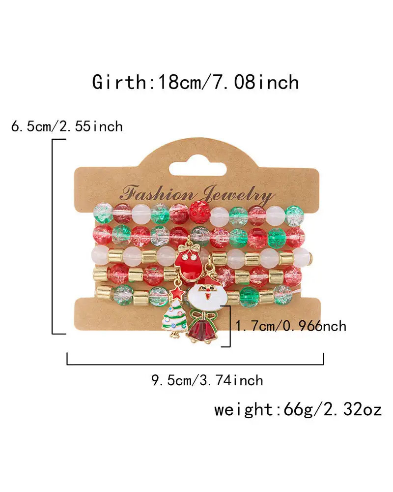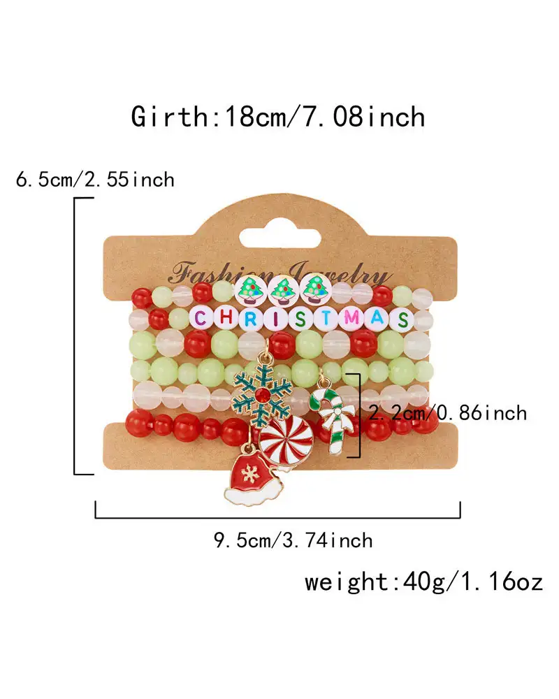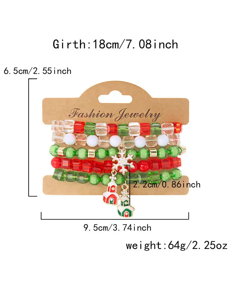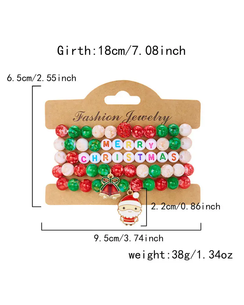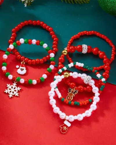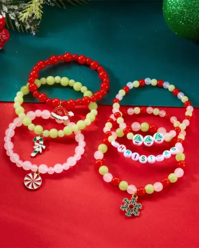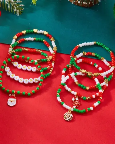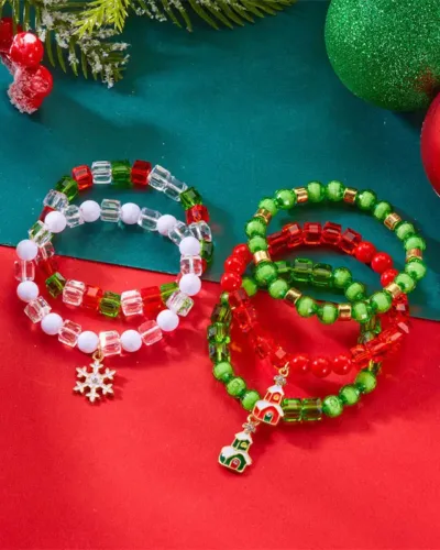 - Crafted with clay and crystal, these Christmas Beaded Bracelets come in a variety of styles. The cartoon-inspired designs are perfect for women and children, adding a touch of cuteness and festive fun.