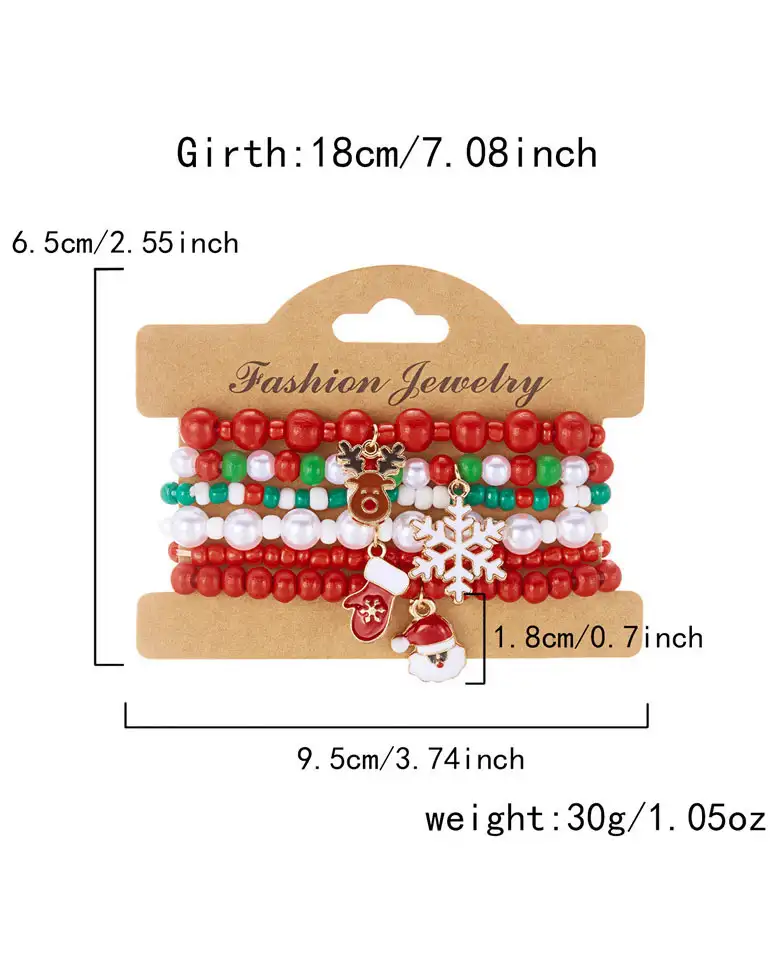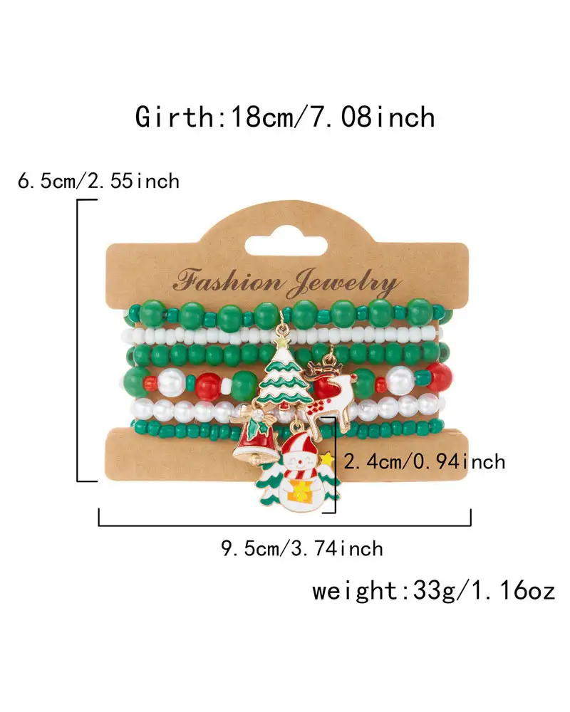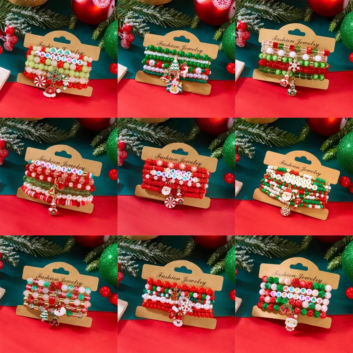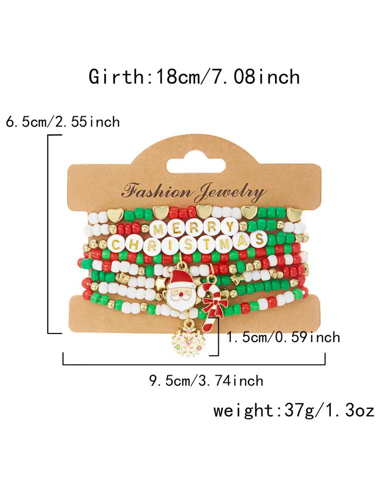 - Crafted with clay and crystal, these Christmas Beaded Bracelets come in a variety of styles. The cartoon-inspired designs are perfect for women and children, adding a touch of cuteness and festive fun.
