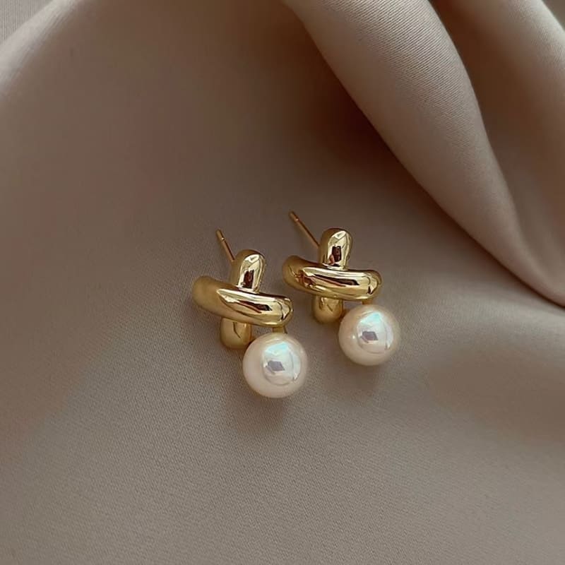 Pendants d'oreilles en perles d'or à la mode pour la vie quotidienne