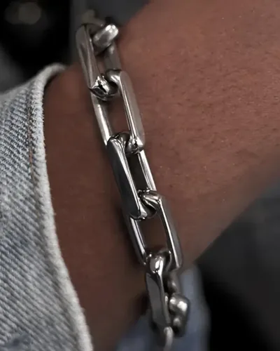 - Cuban Chain Stainless Steel Bracelet with chic style for street wear.
