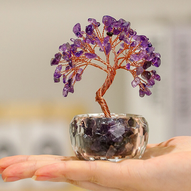 Grand arbre Bonsaï en pierre précieuse Améthyste Rose Quartz