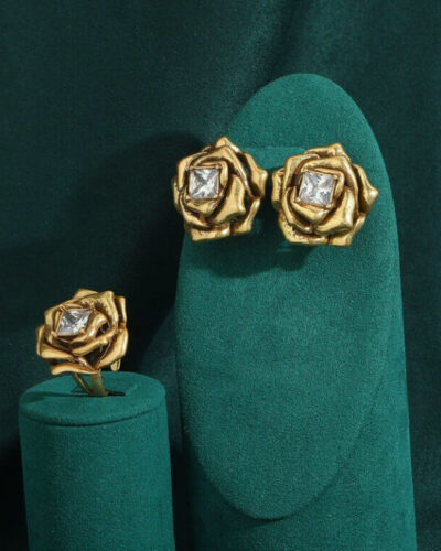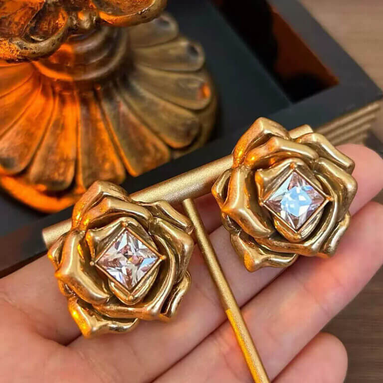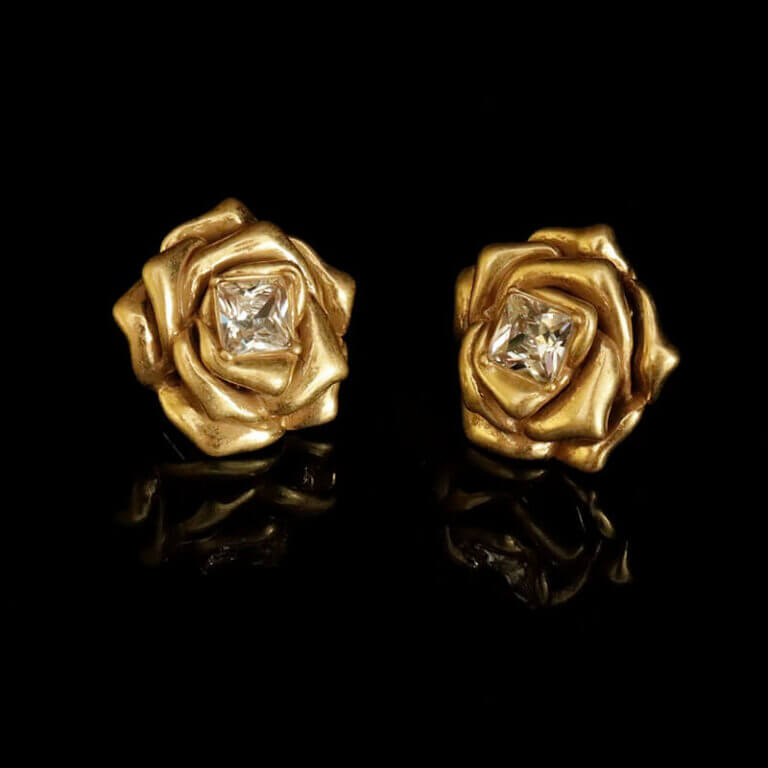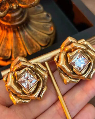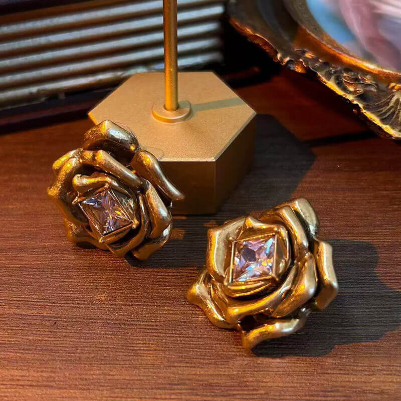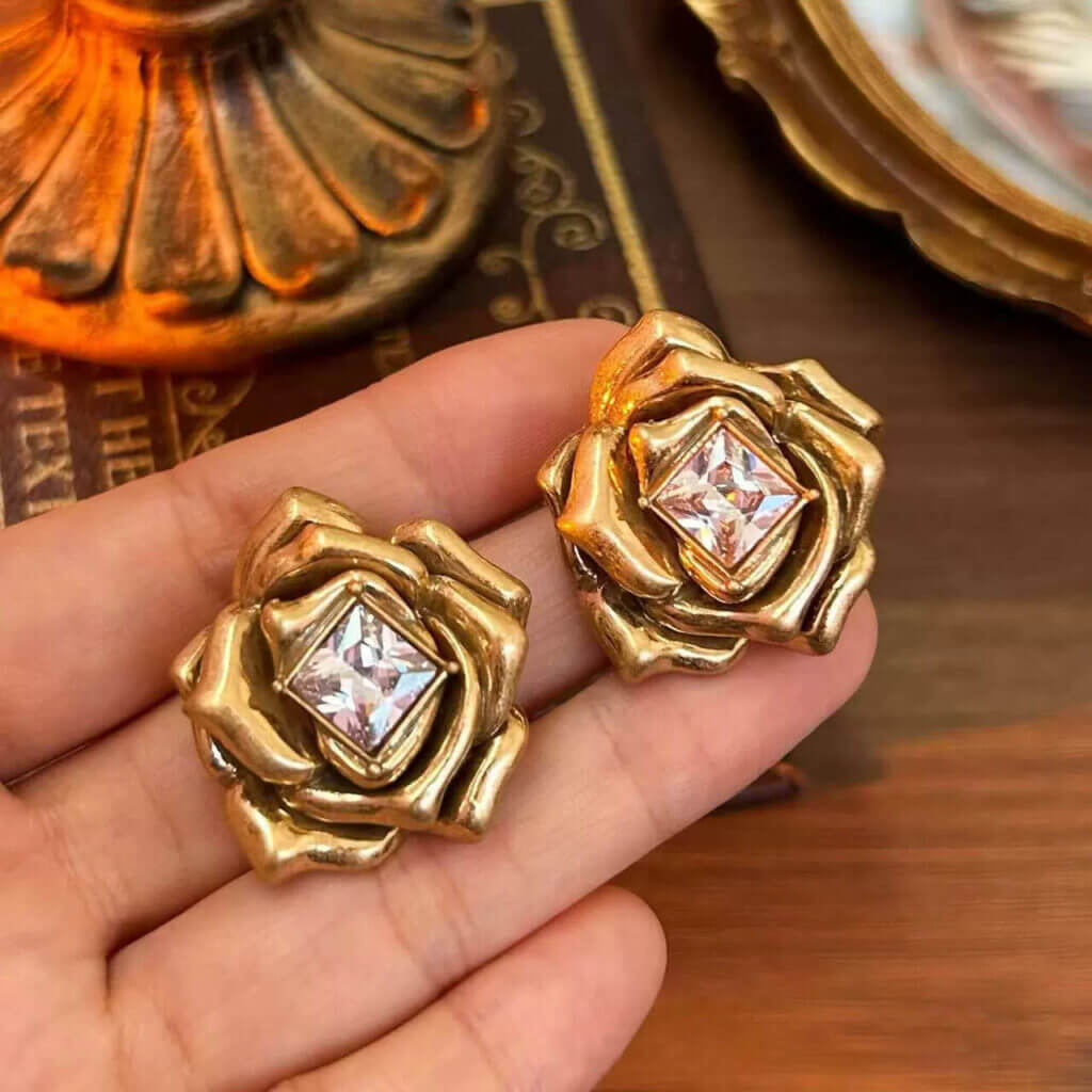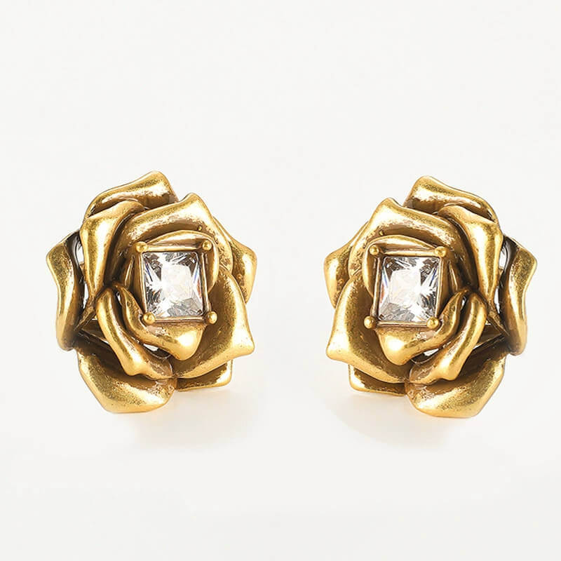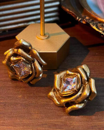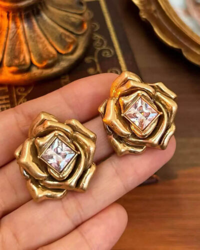 Boucle d'oreille rose plaquée or de style vintage avec zircon carré