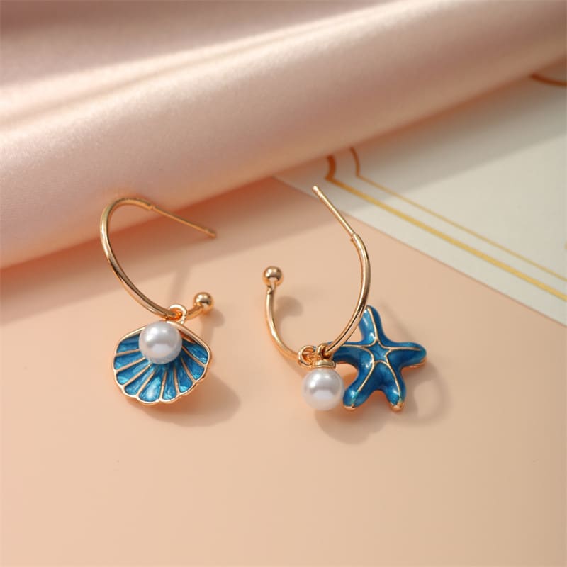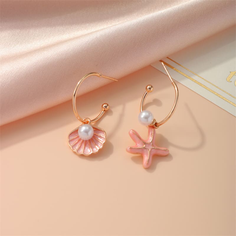 - The pearl adds some female beauty to this earring, while starfish and shell elements can show your cuteness.