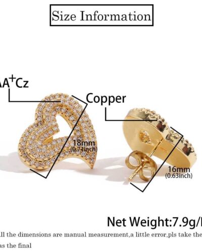 Wholesale Heart Shaped Brass Earring! It uses a heart-shaped brass base inlaid with multiple zircons. No matter what the occasion, it can make you the focus of attention. It is the best choice for couples or friends to give gifts💘.