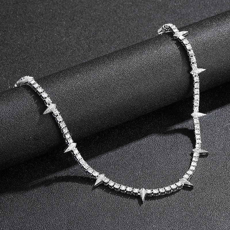 Chaîne en acier inoxydable plaqué or blanc 14K, 6 mm, avec fermoir en CZ