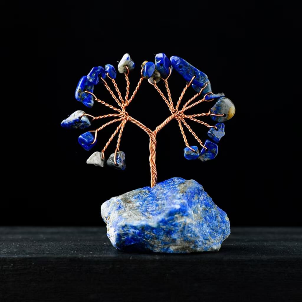 - Lapis Lazuli Chakra Tree Crystals with Raw Stone Base (cristaux de chakra en lapis-lazuli avec base en pierre brute)