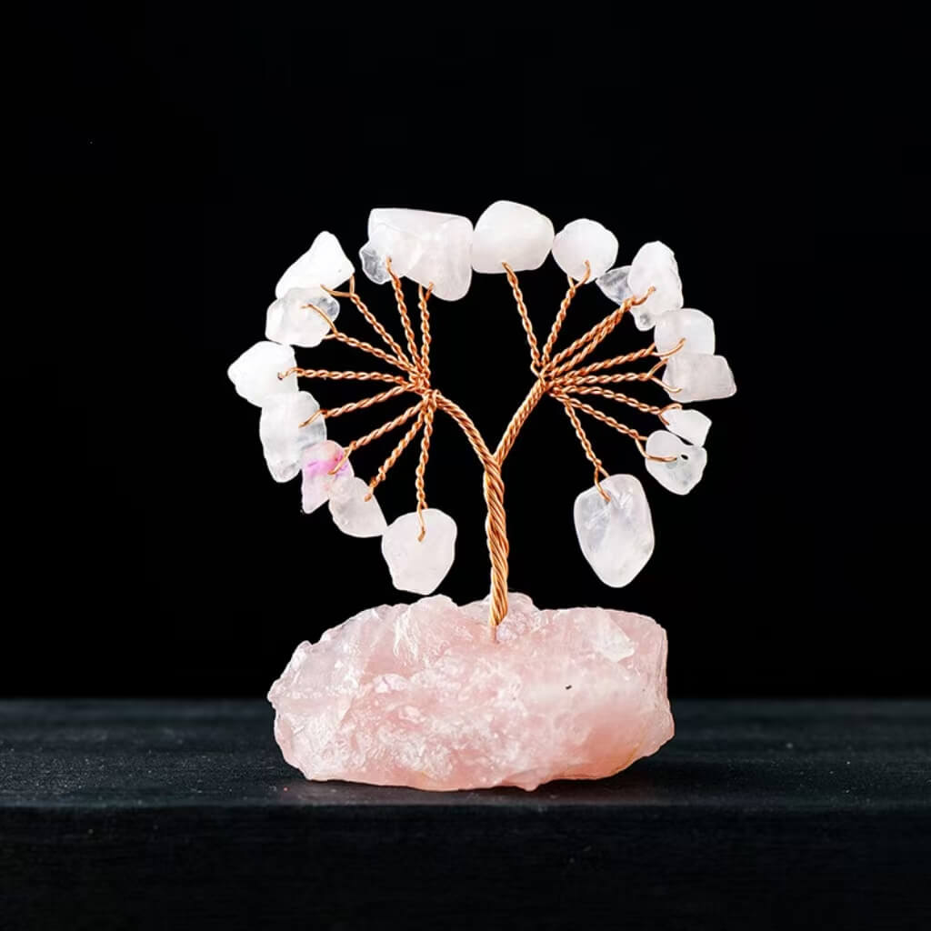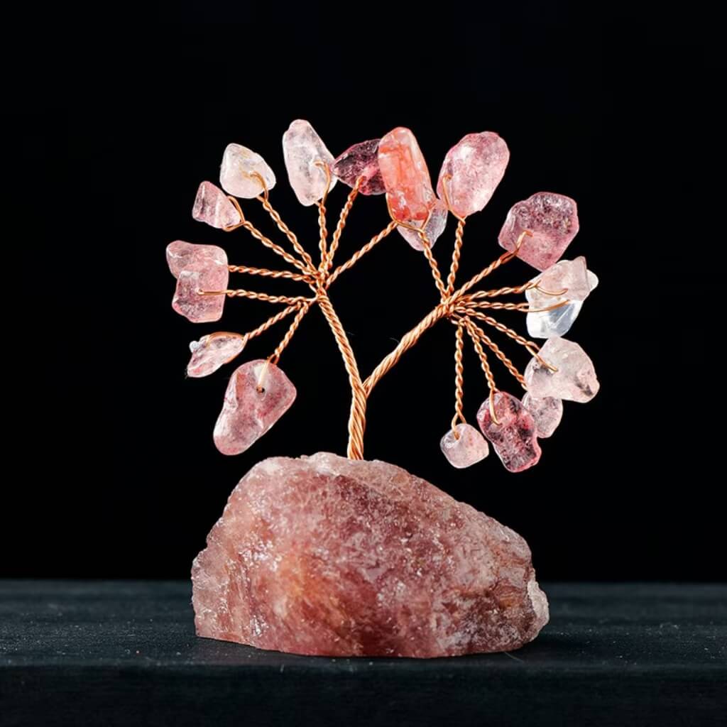 Cœur Grand arbre en quartz rose avec socle Cadeau pour couple