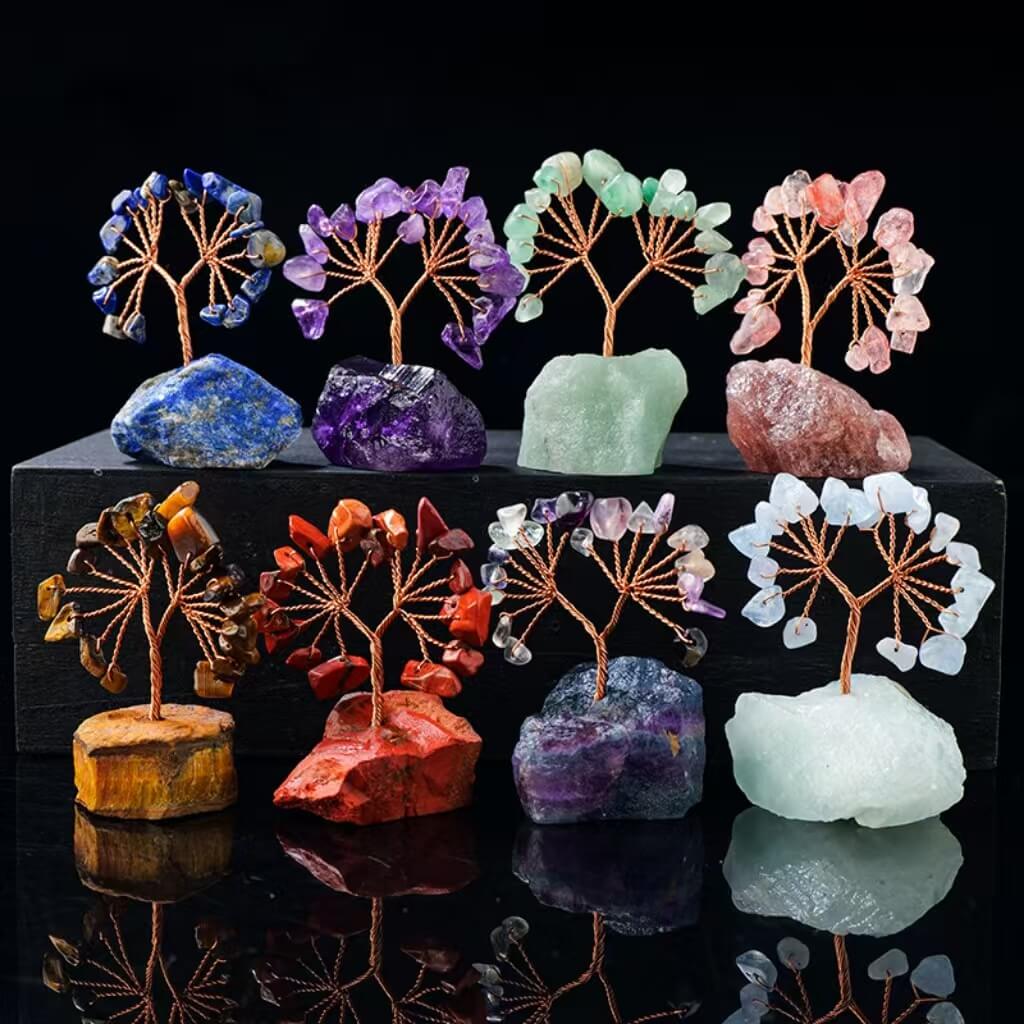 Arbres en cristal 4 couleurs avec base en pierre brute Wholesale