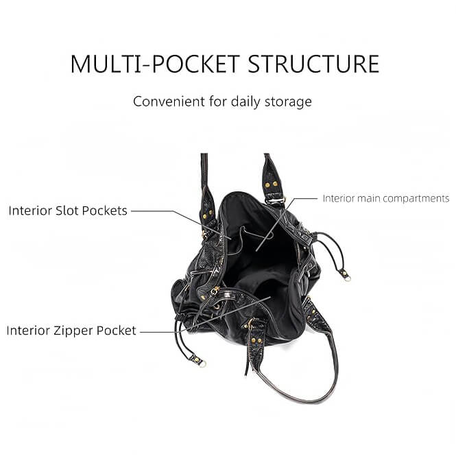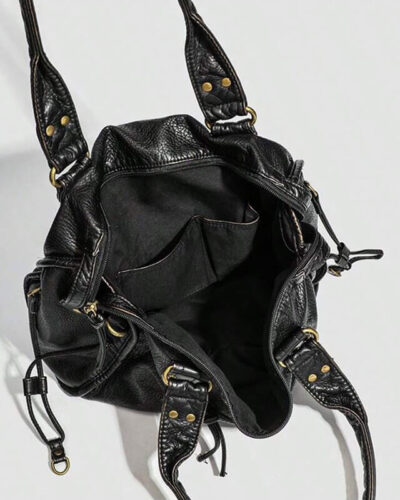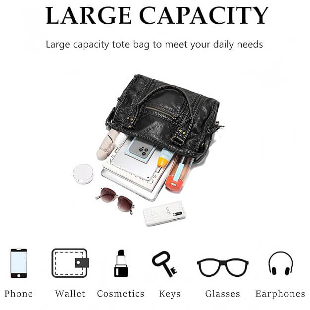 Large Black Leather Tote Bags Retro Hobo Shoulder Bags